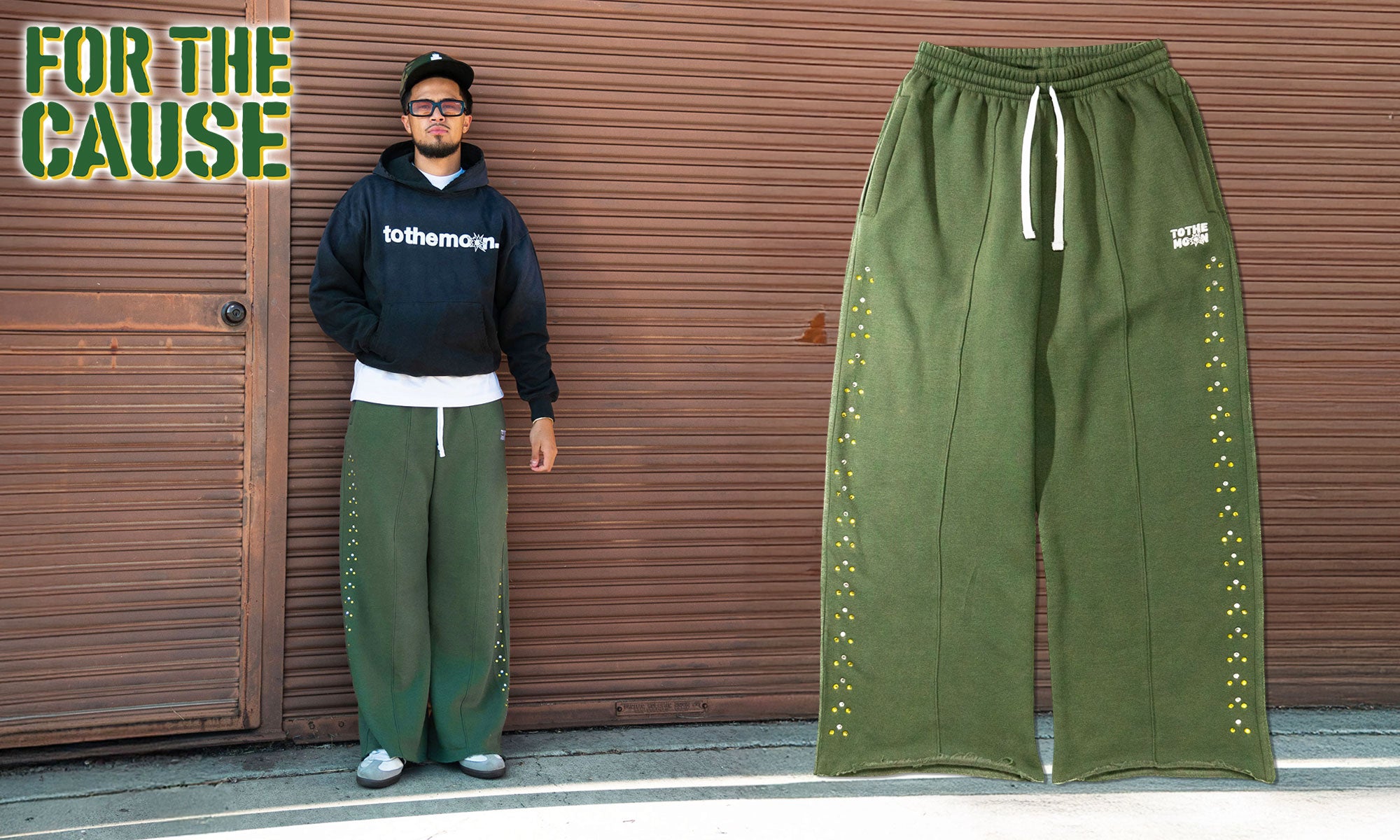 ARMY GREEN WIDE LEG CRYSTAL SWEATS
