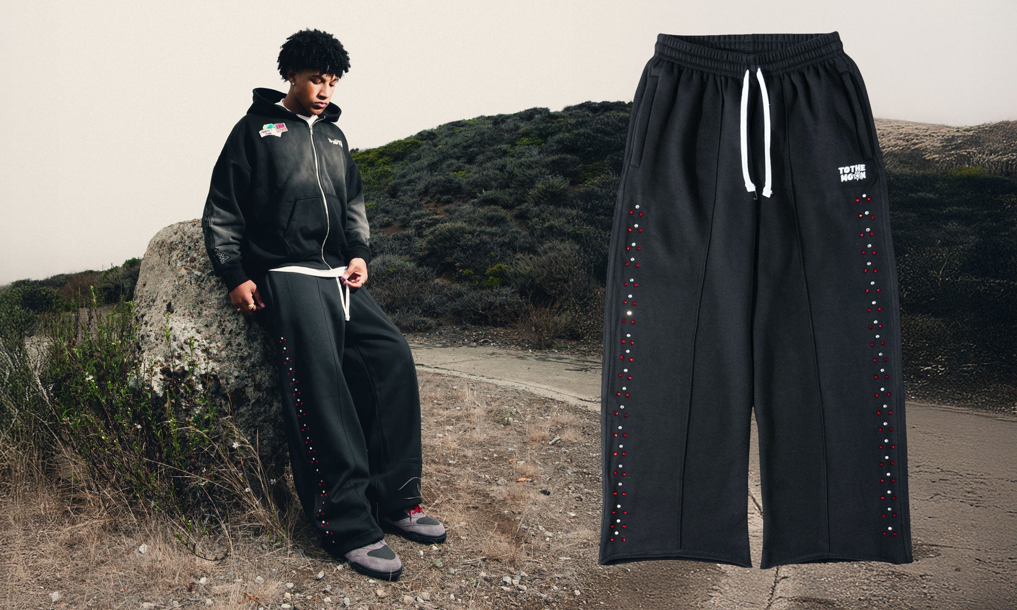 Sold outBLACK WIDE LEG CRYSTAL SWEATS