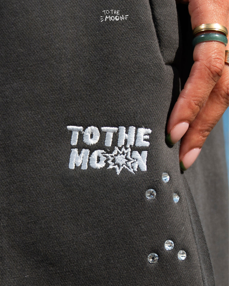 CHARCOAL WIDE LEG CRYSTAL SWEATS