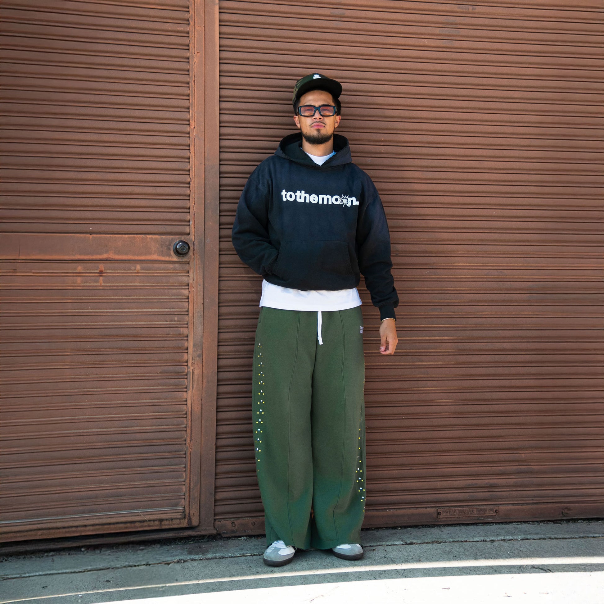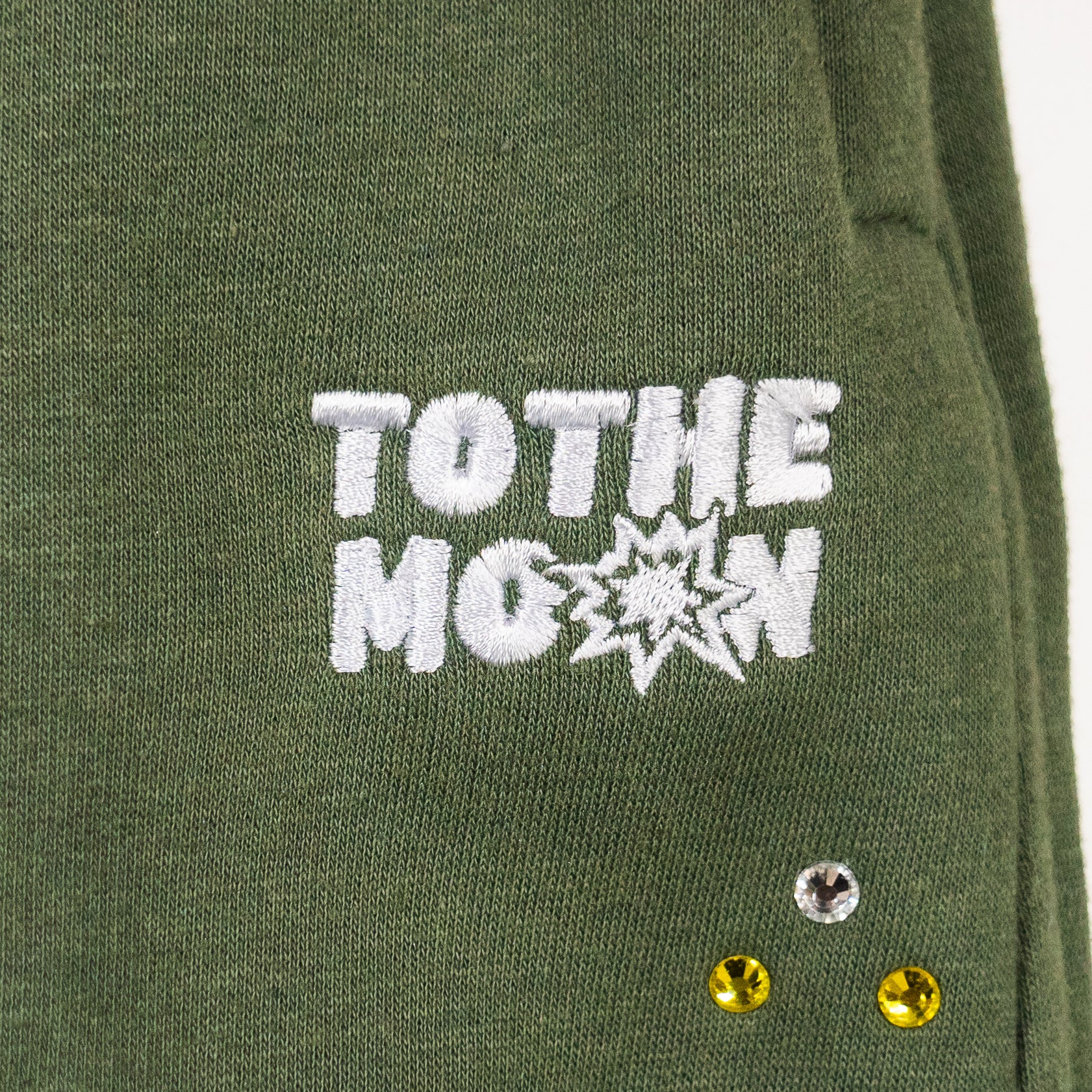 ARMY GREEN WIDE LEG CRYSTAL SWEATS