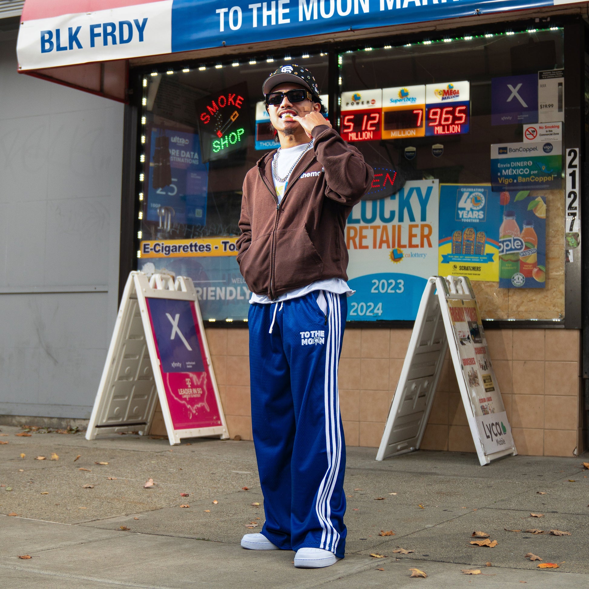 TO THE MOON "BLUE" WIDE LEG MESH TRACK PANTS