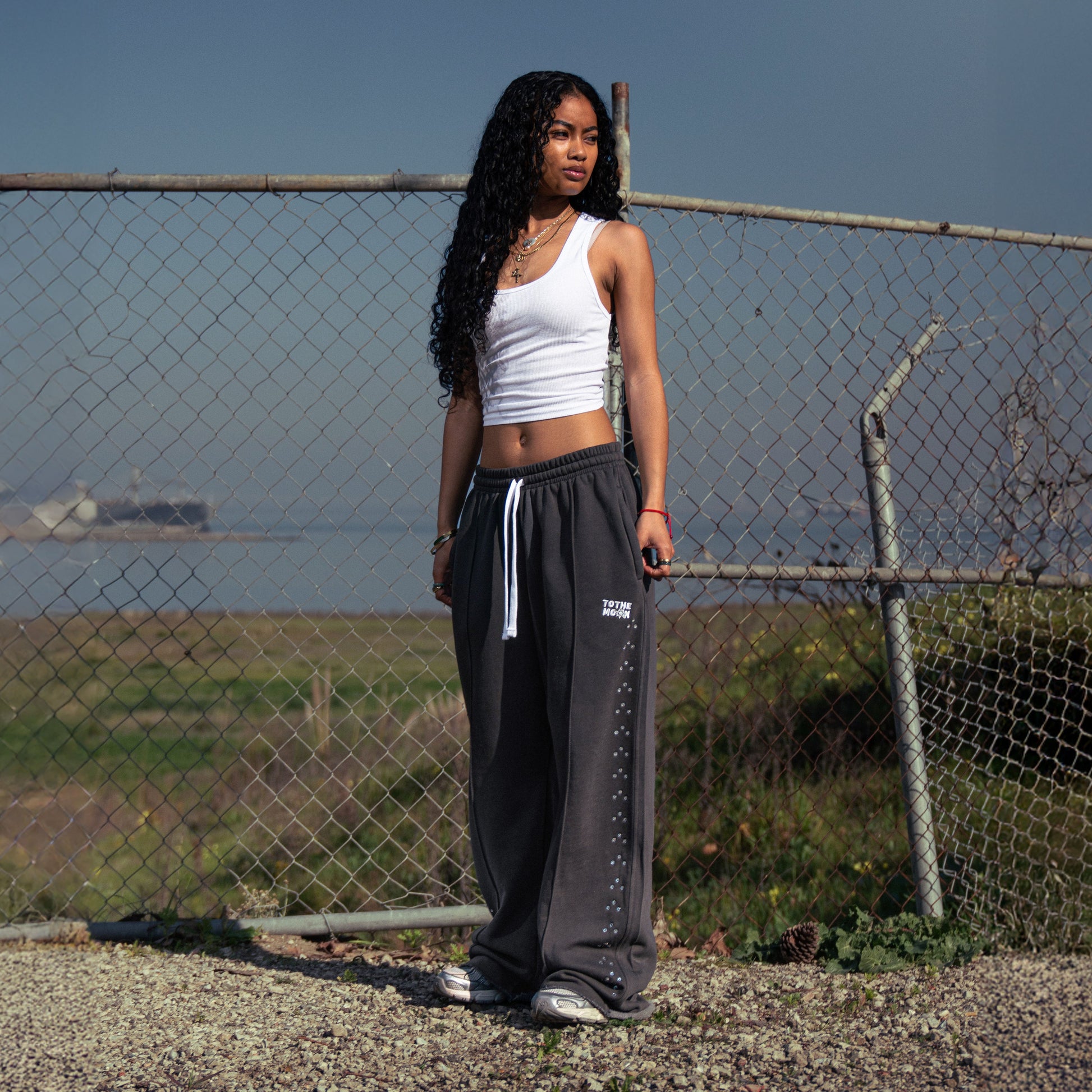 CHARCOAL WIDE LEG CRYSTAL SWEATS