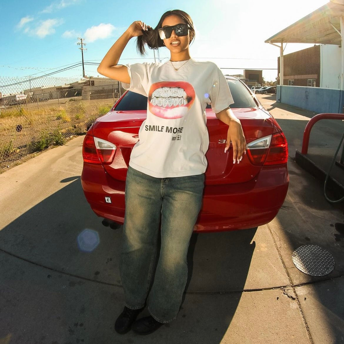 JUICED x TTM SMILE MORE TEE - STONE GREY