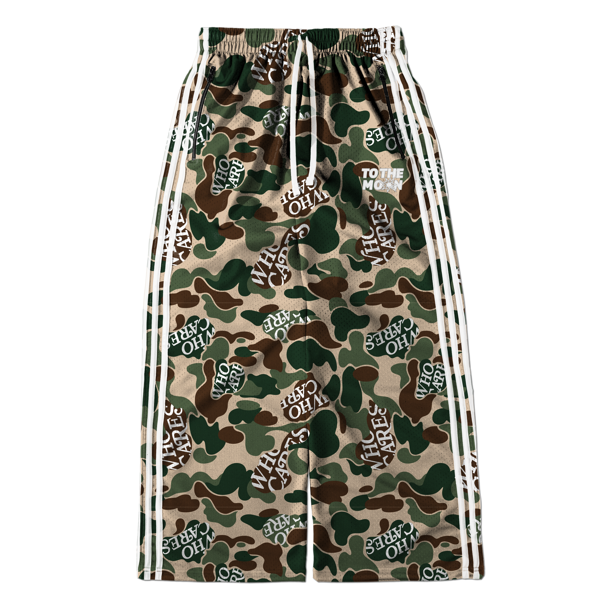 IN COLLABORATION WITH @WHOCARESSUPPLYCO "GREEN CAMO" WIDE LEG MESH TRACK PANTS